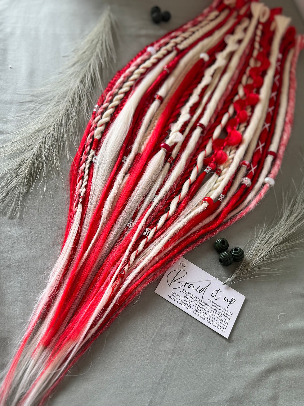 The Sweet~Song Collections is having a joyful vibe! The collection - little braids full of colour, charm and personality! Each piece is handcrafted with love and attached to a soft hair tie for easy styling and playful flair.